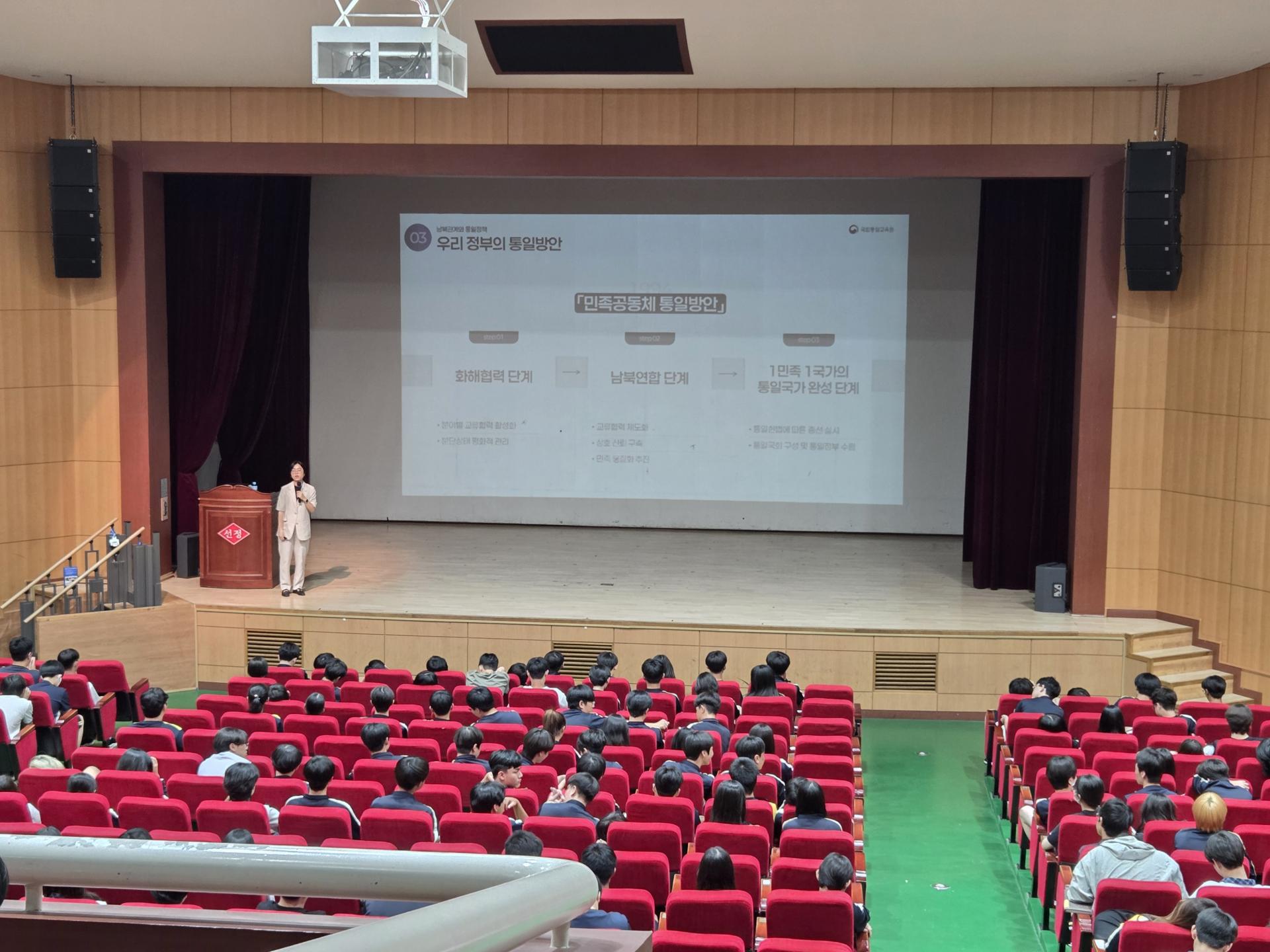 2층까지 꽉 찬 대강당에서 3타임으로 나눠서 진행된 '찾아가는 통일스쿨'