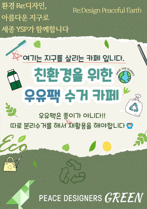 아직은 시도해보지 못했지만, 앞으로는 이 활동과 더불어 환경을 위한 YSP활동과 카페 사장님과 세종시 시민들을 대상으로 친환경 실천 교육도 할 예정입니다.